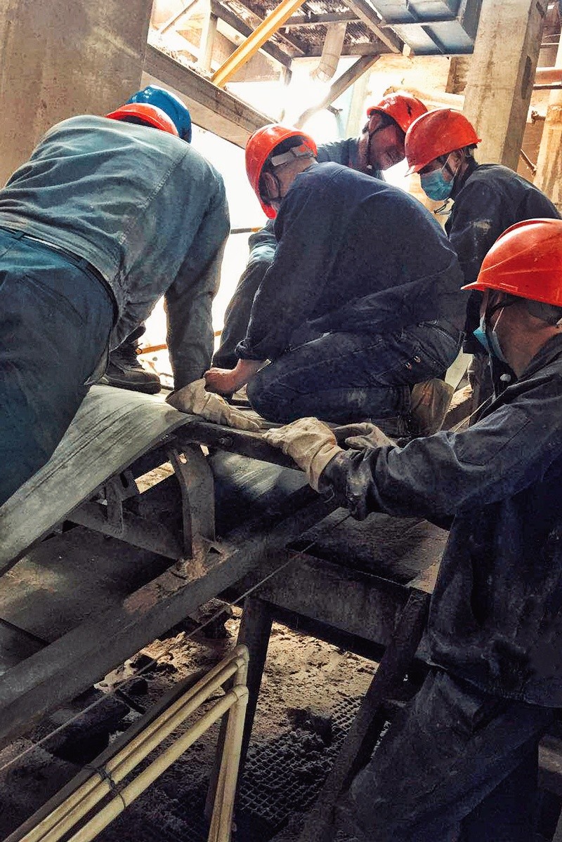 由于#2渣帶磨損嚴重,公司計劃5月1日進行更換,鍋爐分場招募了6名義工完成拉渣帶任務(wù)。檢修人員前期做了充分準備工作,義工發(fā)起責(zé)任人開工前對大家做了簡單培訓(xùn),告知注意事項,并將新舊皮帶接頭做好。隨后義工們一起協(xié)作拉舊皮帶,合理利舊(充分利用舊有資源,達到節(jié)約的目的),完好割下利舊以便后期用,燒壞的直接切除。大家還一起出謀劃策,巧用叉車借力一起拉。后續(xù)整理工作中,專業(yè)人員做難度系數(shù)高的皮帶接合工作,其它人員則從旁做難度系數(shù)較低的整理舊皮帶作業(yè)。原定8個小時的義工任務(wù),在大家的共同努力下,提前了兩個多小時完成。
