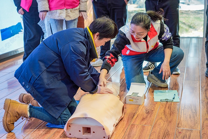 實(shí)操環(huán)節(jié),顧老師采用“模擬救助場(chǎng)景+示范急救方法+反復(fù)操作訓(xùn)練”的方法,耐心指導(dǎo)每位學(xué)員掌握心肺復(fù)蘇的技能,并一一糾正學(xué)員們?cè)诓僮鬟^(guò)程中出現(xiàn)的錯(cuò)誤。